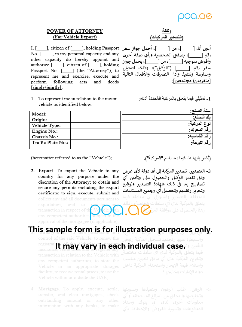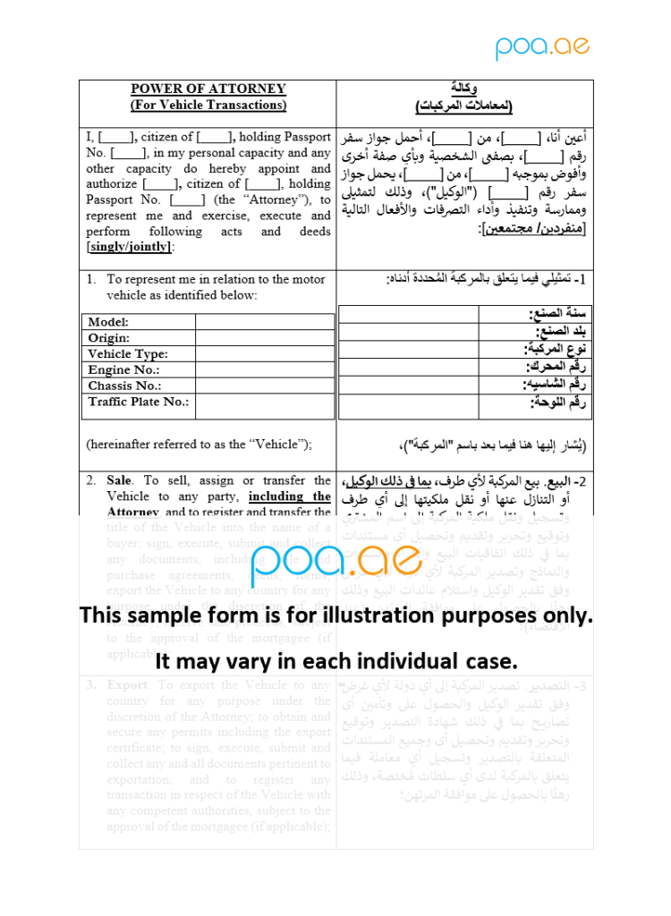 Learn how to sell your vehicle when you are outside of the UAE with a Vehicle Power of Attorney.